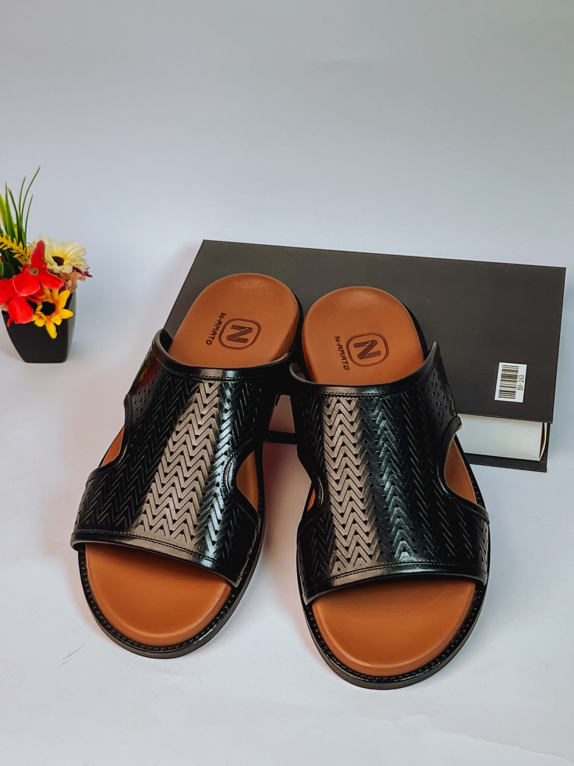 The N-AMATO Premium Black Leather Palm is a fundamental piece for any stylish wardrobe. Proudly produced by master artisans in Turkey, this slide combines durable construction with refined aesthetics, adhering to the high standards of the N-AMATO brand.