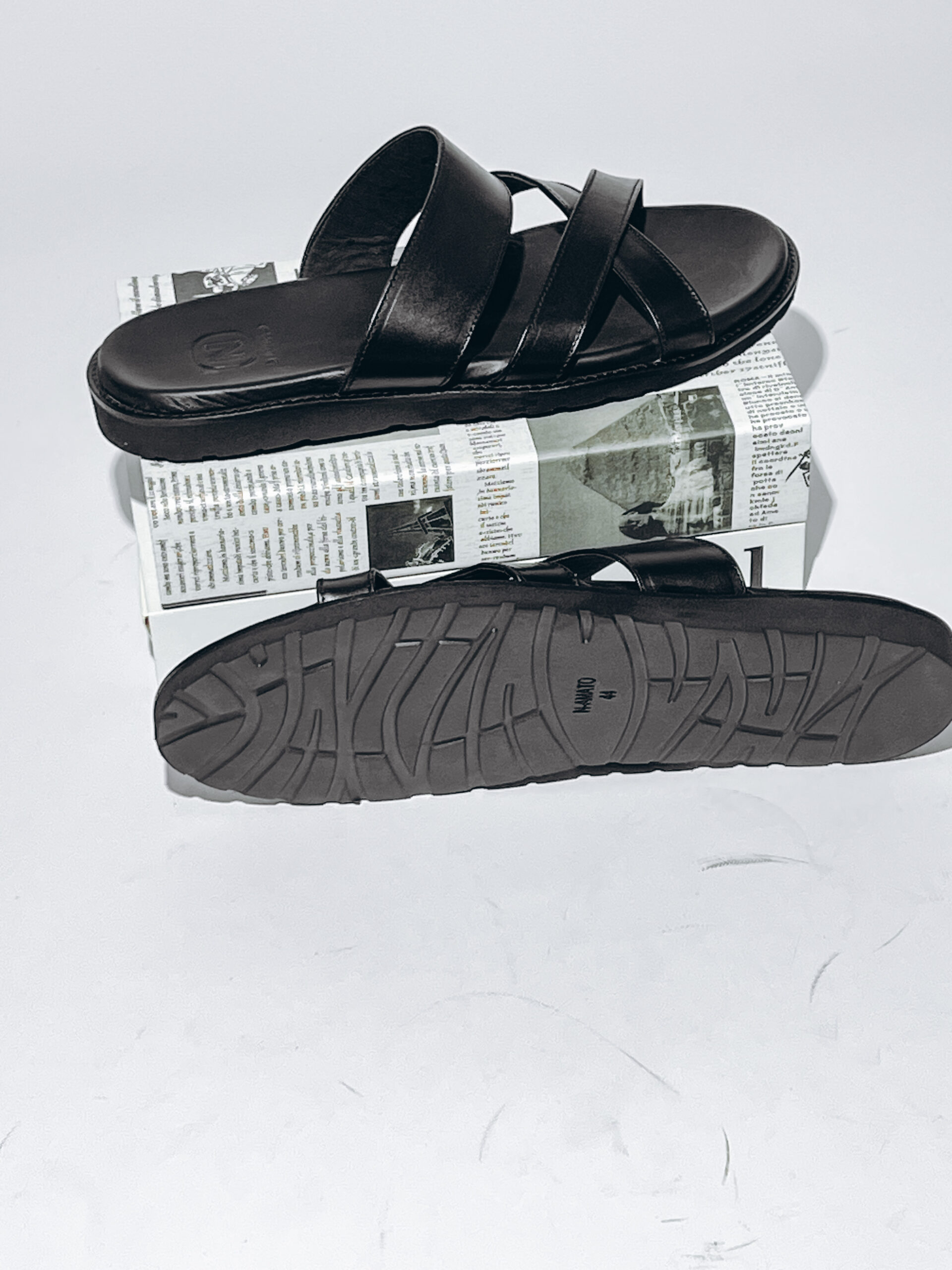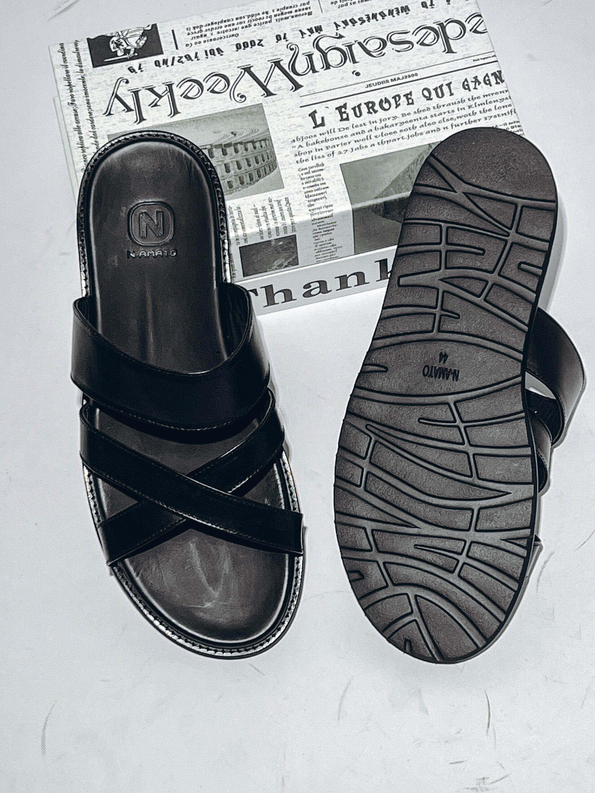The N-AMATO Premium Black Leather Palm is a fundamental piece for any stylish wardrobe. Proudly produced by master artisans in Turkey, this slide combines durable construction with refined aesthetics, adhering to the high standards of the N-AMATO brand.